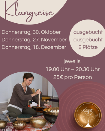 Mit jeder Minute der Klangreise öffnete sich mein Herz ein Stück mehr. Die feinen Schwingungen der Klangschalen, die (an Regentropfen auf einem Holzdach erinnernde😉) Harmony Chimes und andere Instrumente durchdrangen nicht nur meinen Körper, sondern erreichten auch meine Seele. Ich fühlte mich vollkommen glückselig – frei von allem, was mich sonst beschäftigt. Diese Erfahrung war weit mehr als Entspannung. Ich bin sehr dankbar für dieses Erlebnis und kann es nur weiterempfehlen. Wer sich selbst wieder näherkommen möchte, sollte diese Klangreise unbedingt erleben."